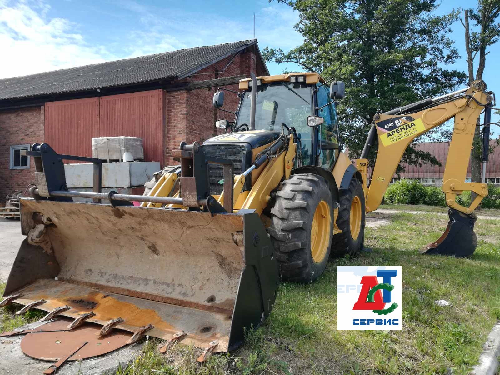 Аренда экскаватора-погрузчика CAT 434E - ровноколёсник, крабовый ход.