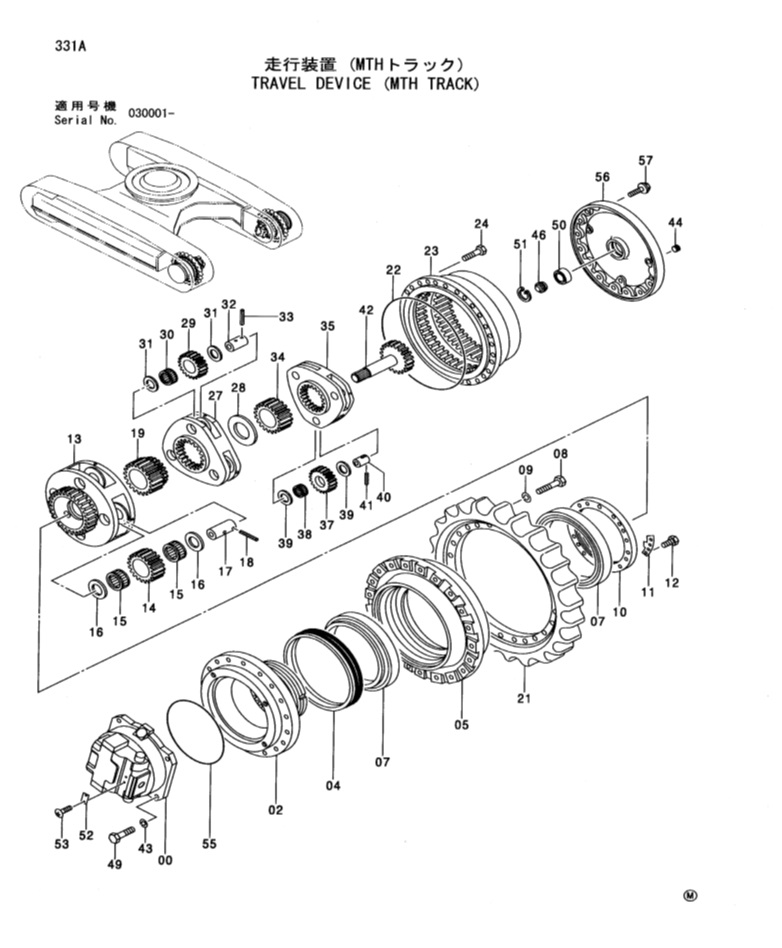 Номер позиции на схеме (см. ниже) Каталожный № Наименование Размеры Data 40 4263901 ZX330 Вал сателлита (1-ый блок) φ39*44 41 4222030 ZX330 Палец подпружиненный (1-ый блок) 39 4269295 ZX330 Шайба упорная (1-ый блок) φ80φ40.2*0.5 28 4263905 ZX330 Шайба упорная (1-ый блок) φ158.5φ79*10.5 34 3053785 ZX330 Шестерня солнечная (2-ой блок) 36T,90ID,62H 27 1015523 ZX330 Планетарная передача (2-ой блок) 24S,83.5H 29 3053194 ZX330 Шестерня планетарная (2-ой блок) 28T 70ID 36H 32 4263902 ZX330 Вал сателлита (2-ой блок) φ50*64 33 4203180 ZX330 Палец подпружиненный (2-ой блок) 31 4201968 ZX330 Шайба (2-ой блок) φ82.5φ50.8*0.5 28 4263905 ZX330 Шайба упорная (2-ой блок) φ158.5φ90.5*3 ZX330 2-ая планетарная передача к-т 24S,83.5H 19 3053786 ZX330 Шестерня солнечная (3-й блок) 24T,90ID,95.5H 13 1015883 ZX330 Планетарная передача (3-й блок) 60S,160H 14 3035195 ZX330 Шестерня планетарная (3-й блок) 22T,82ID,60H,147OD 17 4263903 ZX330 Вал сателлита (3-й блок) φ60*104.5 16 4219595 ZX330 Шайба упорная (3-й блок) φ98φ60.5*1.2 18 4207947 ZX330 Палец подпружиненный (3-й блок) ZX330 3-я планетарная передача к-т 60*82*30 23 1018360 ZX330 Шестеренчатое кольцо 68*93T φ548*213 05 1015882 ZX330 Корпус редуктора 24 SPROCKET HOLES 46 4288767 ZX330 Пробка φ50*18.5 10 3043140 ZX330 Гайка φ360*21
