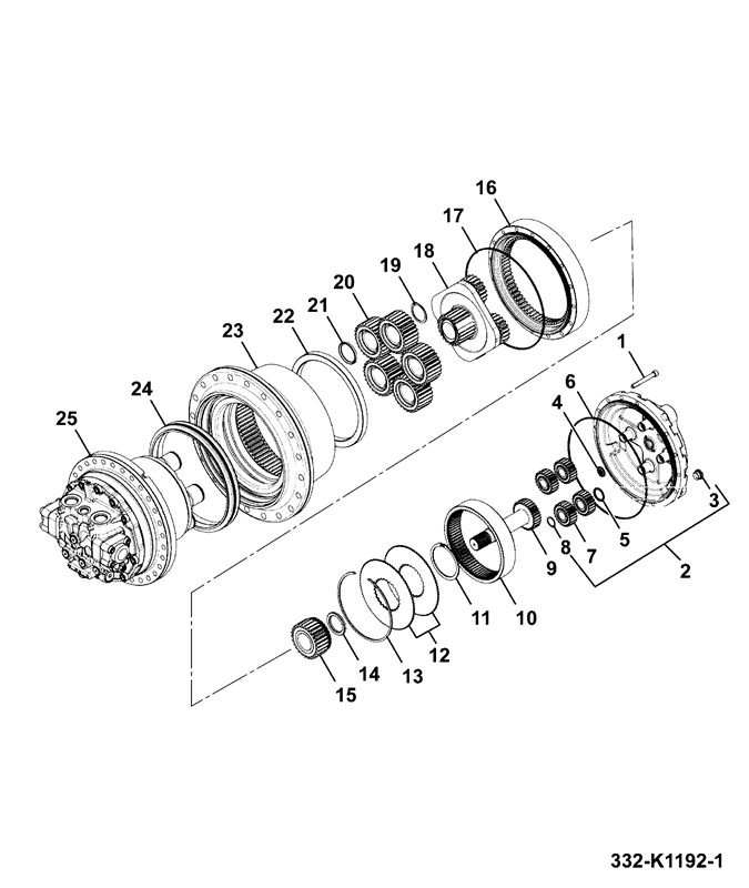 Редуктор хода в сборе (без гидромотора) (поз. №1 – 24)