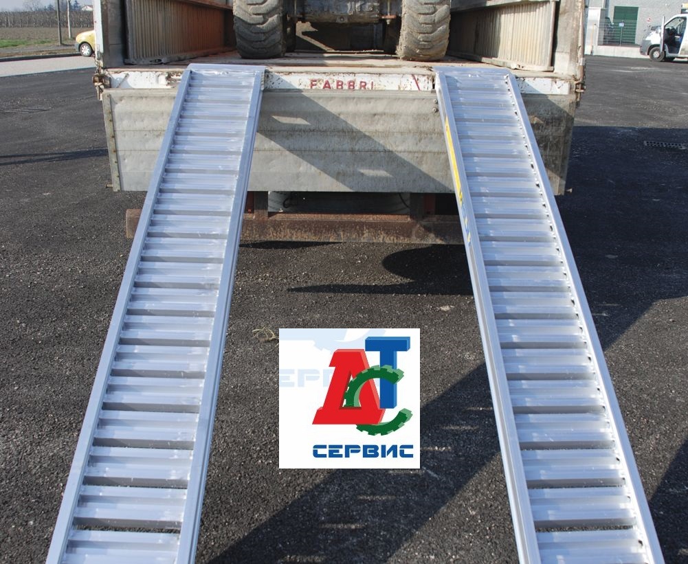 ООО "ДСТ-сервис" поставляет итальянские погрузочные облегченные алюминиевые аппарели (рампы), для заезда/съезда, погрузки/разгрузки гусеничной и колесной спецтехники, транспортных средств, оборудования весом до 12600 кг, разработанные под строгим контролем качества и в соответствии со стандартами ISO 9001 (контроль подразумевает использование высоких стандартов безопасности на стадии разработки, включая расчет структуры и анализ методом окончательных элементов).